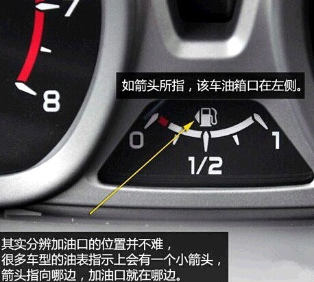 車輛的油箱蓋有的在左側(cè)有的在右側(cè),我們應(yīng)當(dāng)牢記自己車輛油箱蓋的位置,加油時(shí)把車停在相應(yīng)的位置上,否則加油管可能不夠長(zhǎng)。不過(guò)日常生活中有些人就是總也記不住自己油箱蓋的位置,每次進(jìn)了加油站才要臨時(shí)回憶加油口在哪邊,大家可以注意觀察自己車輛油表上會(huì)有一個(gè)箭頭標(biāo)識(shí),這個(gè)箭頭指向哪邊,我們的加油口就在哪邊。我們?cè)貌煌放频能囕v驗(yàn)證過(guò),的確如此。不過(guò)個(gè)別車型沒(méi)有這個(gè)箭頭,就只能自己憑記憶了。好像咱們的小獅子車型沒(méi)有這個(gè)箭頭。