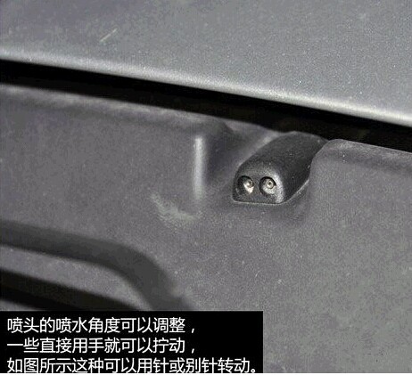 相信很多老車主遇到過(guò)這樣的情況,開(kāi)啟玻璃水噴水功能,水花亂飛,甚至有些噴過(guò)了車頂。通常情況下我們的噴頭可能被水垢堵住或是噴水角度發(fā)生了變化,并且我們可以自己動(dòng)手進(jìn)行調(diào)整。用針或較細(xì)的物體來(lái)頂住出水口,輕微移動(dòng),反復(fù)嘗試,可以調(diào)整到最佳位置。